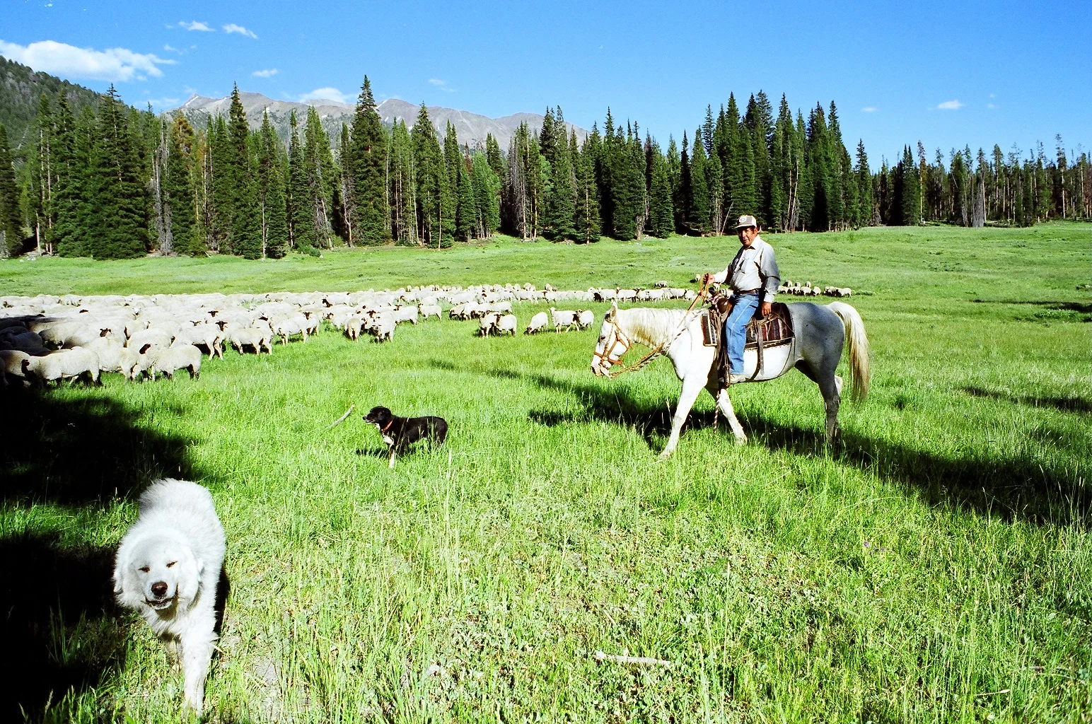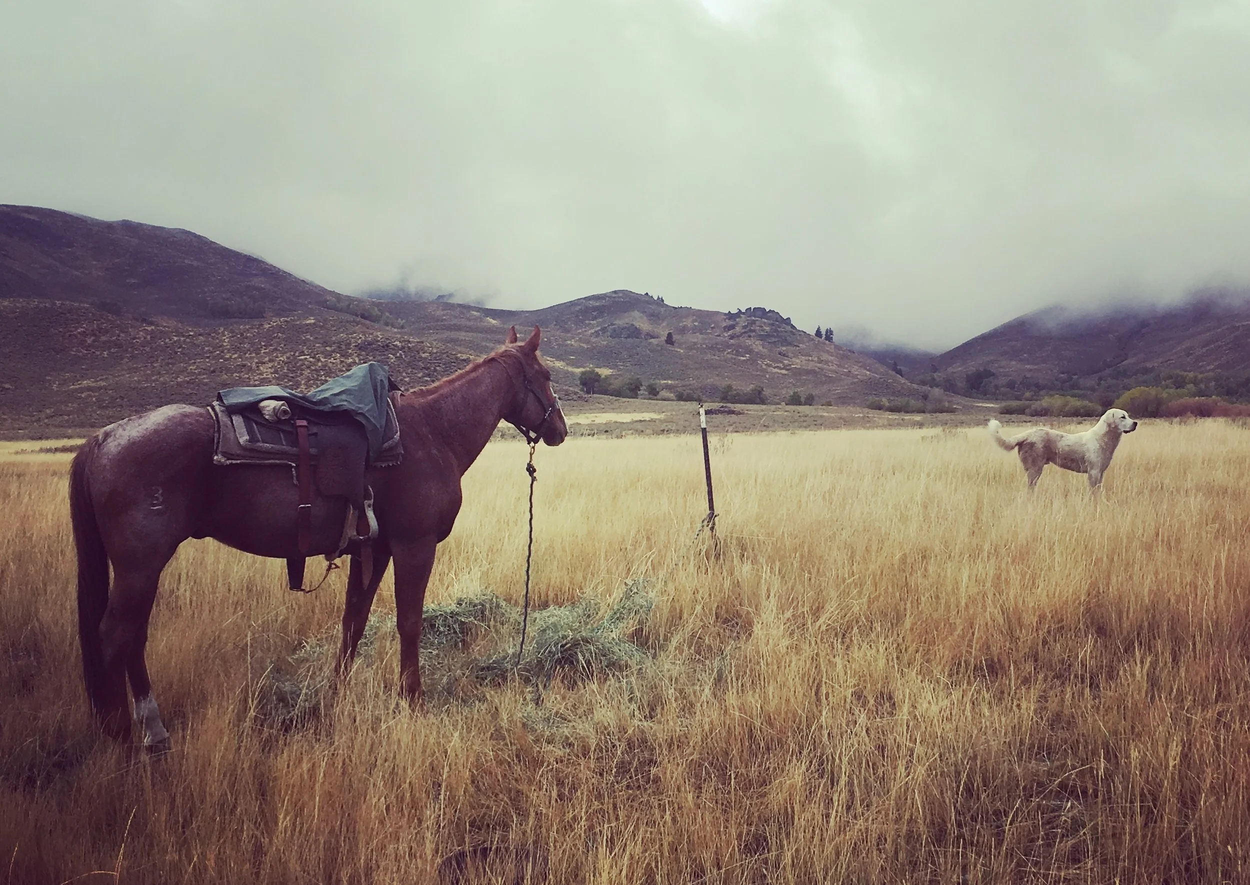 Photo Credit: Avery Shawler Location on Website: Home Page Banner Slideshow Description: Sheep herder's horse and guard dog in Fish Creek