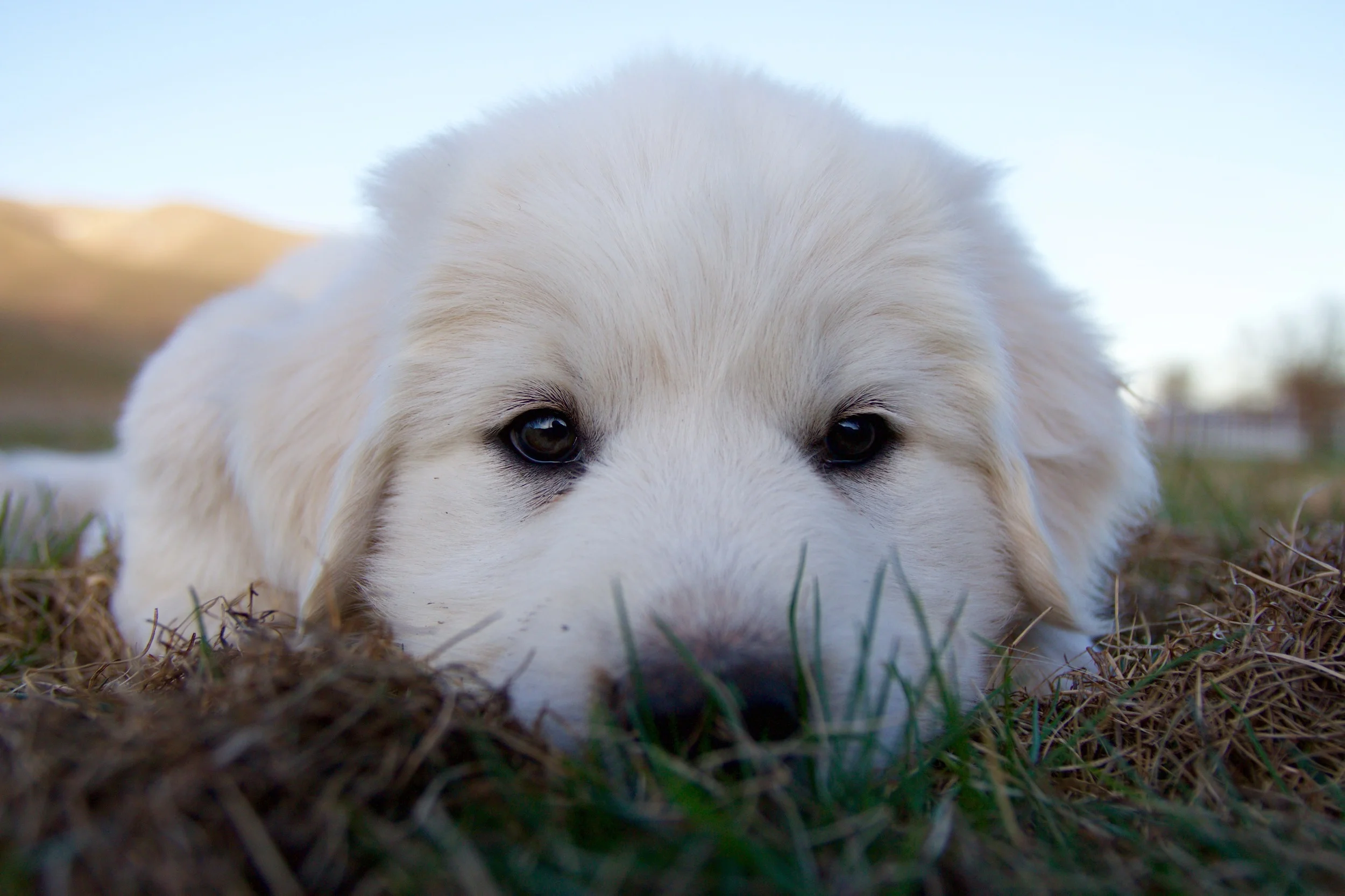 Description: Guard dog puppy at the Lava Lake Main Ranch
