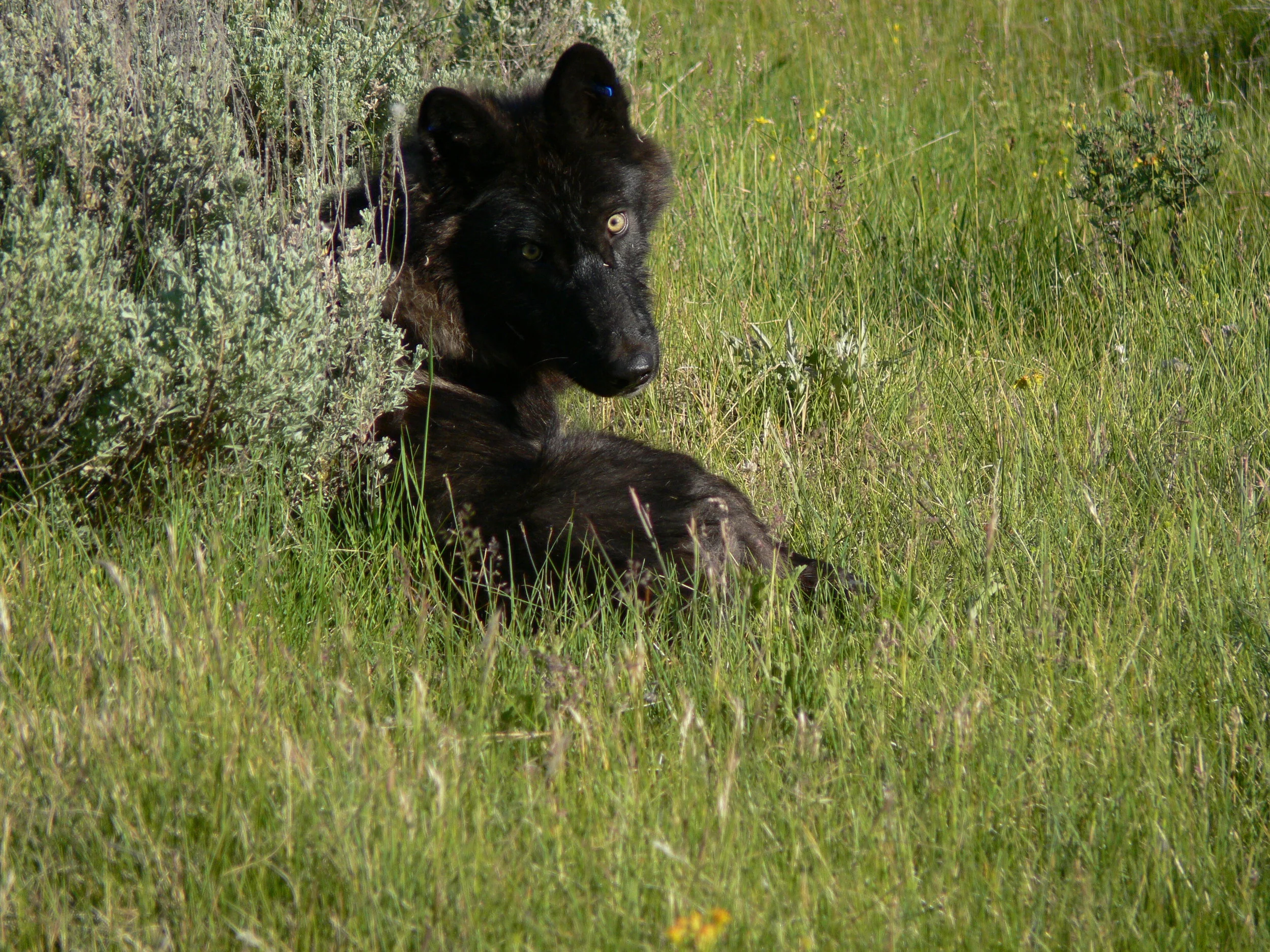 Description: The alpha female of the Pioneer Pack in 2012 captured on a trail camera with her five pups.