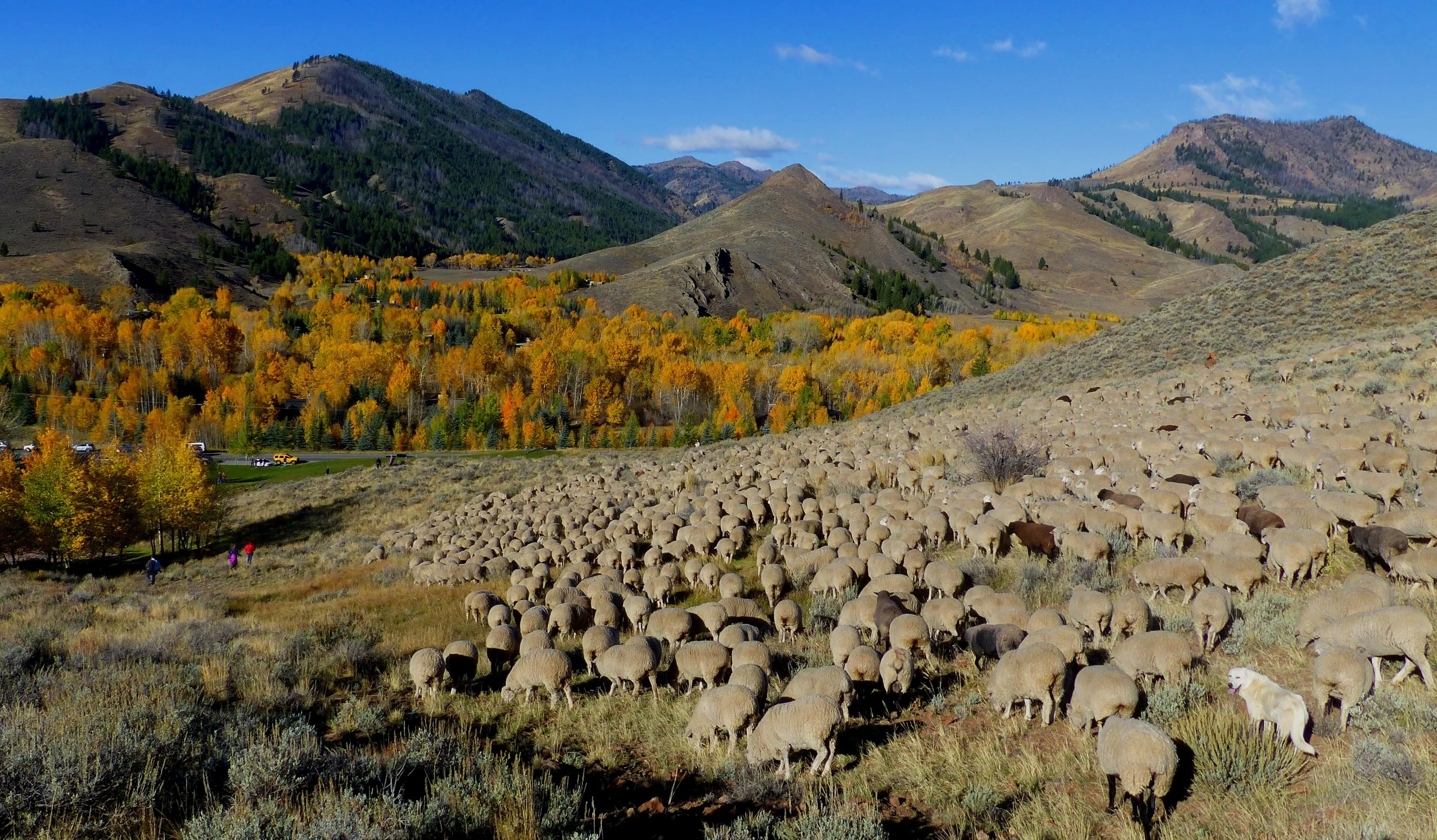 Photo Credit: Phoebe Bean Location on Website: Home Page Banner Slideshow Description: Lava Lake sheep among aspens