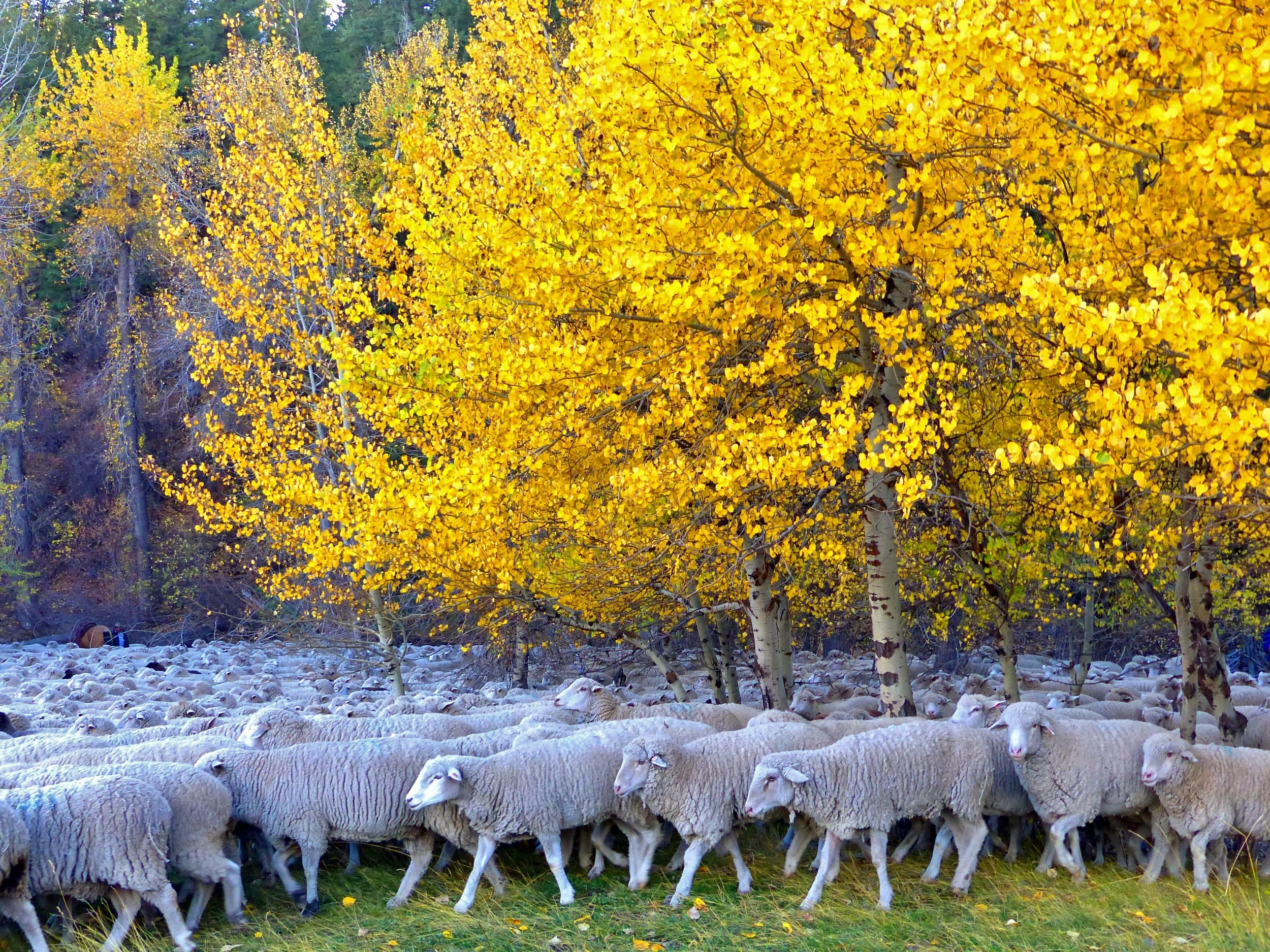 Photo Credit: Carol Waller Location on Website: Home Page Banner Slideshow Description: Sheep among the aspens during Trailing of the Sheep