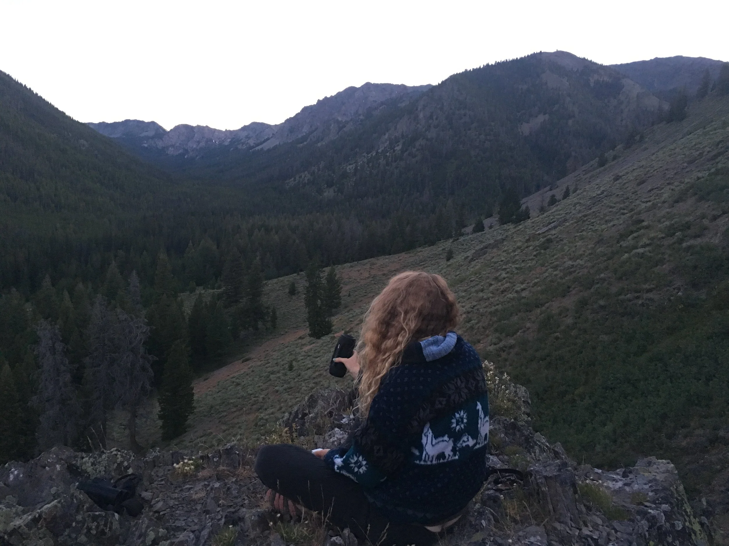 Description: Lauren Hennelly conducting a howl survey at dusk in the Project Area