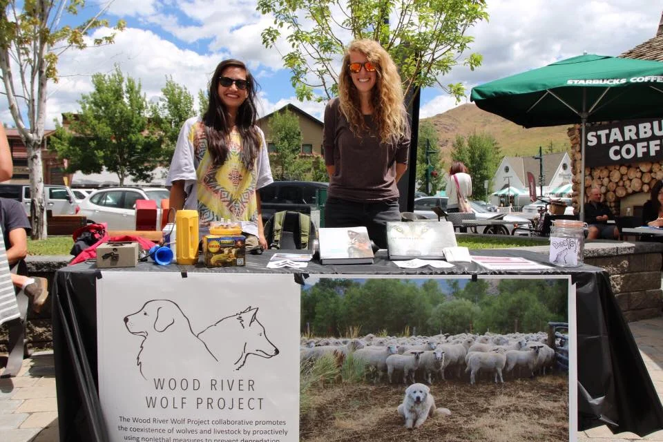 Avery and Lauren with the Wood River Wolf Project booth in Ketchum Town Square.